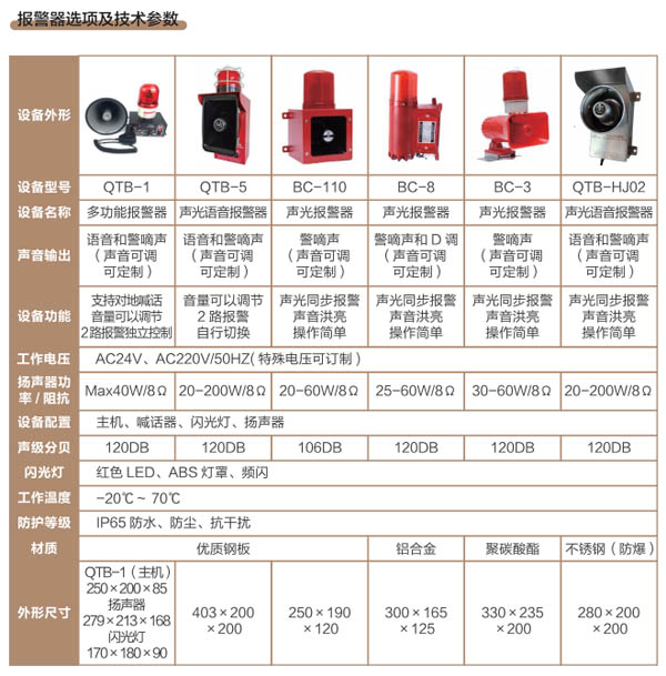 報(bào)警器系列產(chǎn)品LED閃光燈和擴(kuò)音喇叭同時(shí)示警的設(shè)備,具有高亮度閃光、響亮音頻報(bào)警功能,廣泛用于冶金鋼鐵、港口碼頭、化工、電力、煤礦礦山、工程機(jī)械、橋梁隧道等行業(yè)設(shè)備及場所,我公司致力于智能聲光報(bào)警設(shè)備的研發(fā)與制造,采用先進(jìn)的聲光控制技術(shù)內(nèi)置語音IC芯片,滿足不同領(lǐng)域的需求,產(chǎn)品具有重量輕、防水、防塵?拐、抗干擾、使用簡單等優(yōu)點(diǎn),針對不同生產(chǎn)場所環(huán)境和設(shè)備開發(fā)的系列產(chǎn)品有:多功能起吊報(bào)警器、聲光報(bào)警器、語音聲光報(bào)警器、防爆報(bào)警器、電子蜂鳴器等