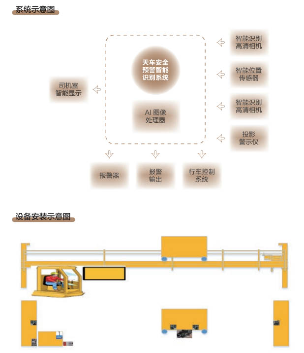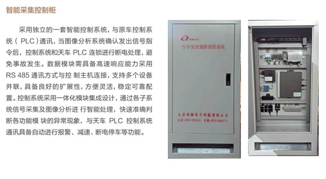 6、行車智控系統(tǒng):控制系統(tǒng)采用一體化模塊集成設計, 通過各子系統(tǒng)信號采集及圖像分析進 行智能處理,快速準確判斷各功能模 塊的異常現(xiàn)象,與主機PLC控制系統(tǒng) 通訊連接具備自動進行報警、減速、斷電停車等功能,當系統(tǒng)確認發(fā)出信號指令后,控制系統(tǒng)和行車PLC連鎖進行斷電處理,避免事故發(fā)生。