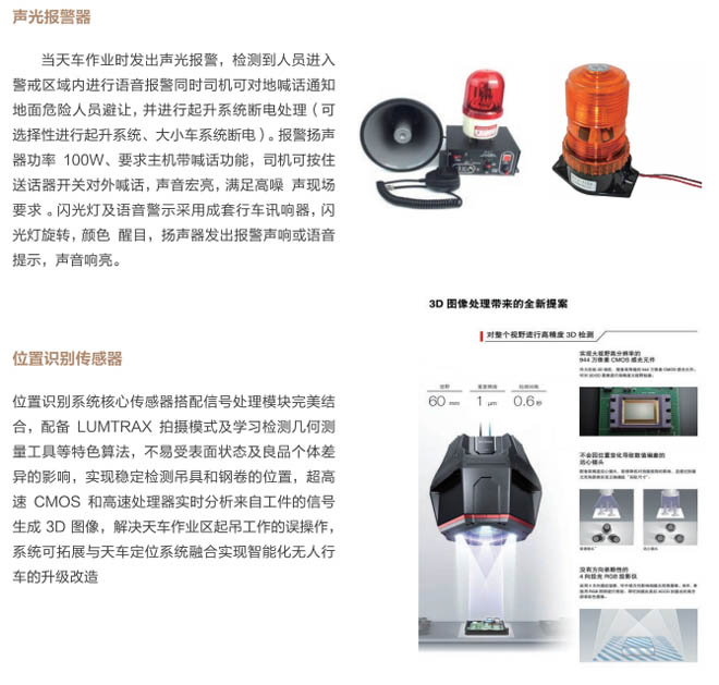 5、位置識別系統(tǒng):采用定位及位置識別最新技術,通過圖像識別傳感器,識別鋼卷和吊具的位置,進行計算和分析判斷吊具與鋼卷具備吊掛和起吊條件,進行語音提示,系統(tǒng)具有自動識別跟蹤鋼卷與吊具的距離,操作工實時掌握清晰的位置及畫面信息,準確無誤的操作,與天車定位系統(tǒng)拓展能達到自動起吊,最終實現(xiàn)智能化、無人化行車的升級改造。該系統(tǒng)能極大的減少操作人員的誤操作,給生產及安全提供有力保障,提高生產效率及設備安全性。